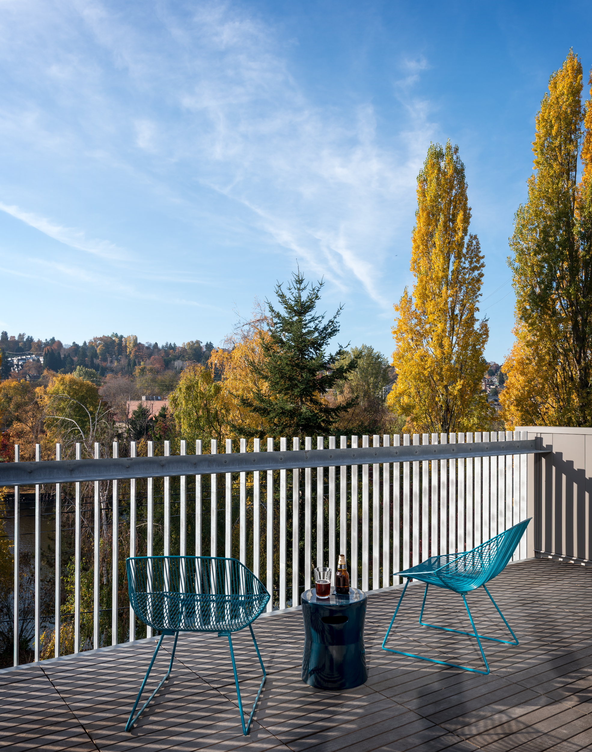 An open floorplan is punctuated with conference rooms, hospitality areas and modular meeting areas, encouraging collaboration and serendipitous work encounters. Designed to accommodate teams and projects, along with productive quiet zones, the space flexes to the needs of a business and its workers. Ground-floor retail frontage along the Burke Gilman Trail offers additional flexibility for mixed-use potential.